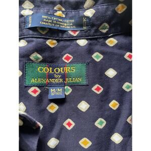 Colors Alexander Julian Navy Mens Button Down Shirt Diamond AOP Size Medium