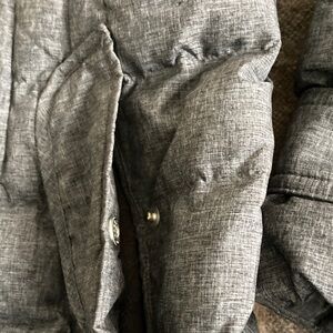 Cozy and stylish puffer coat. Features a quilted design, removable hood, fleece cuffs. Length hits mid thighs, ideal for cold weather.