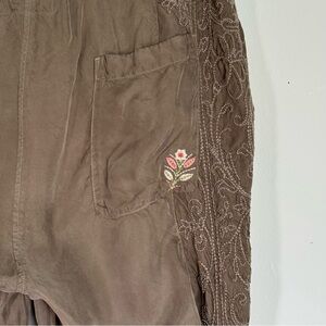 Johnny Was Pete & Greta Embroidered Floral Cupra Cargo Pants Size L Lagenlook