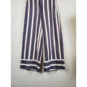Banana Republic 0 Women LINEN Pants Wide Leg Crop High Rise Striped Blue