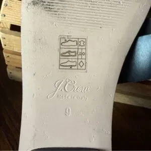 Good used condition. Shows signs of wear including creasing at straps, minor scuffs, small chip on the back of the right heel.