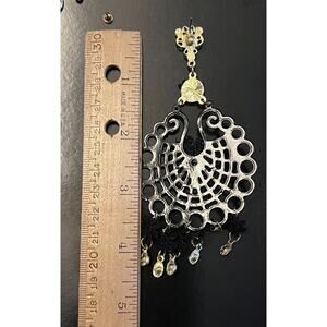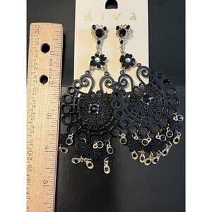 Women's Black Gold Tone Crystal Rhinestone Chandelier Dangle Earrings Round Diva brand. These are brand new, never worn.