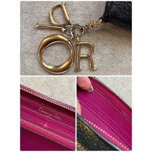 Christian Diorissimo Round Zipper Long Wallet Round Zip Logo Charm Black Pink