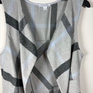 Favlux Long Wool Blend Gray Blue Plaid Cardigan Sweater Vest Size Large