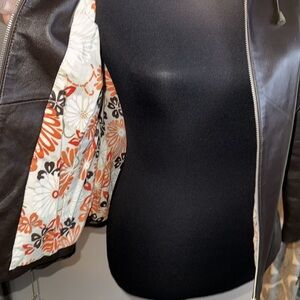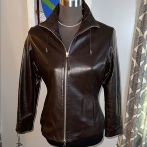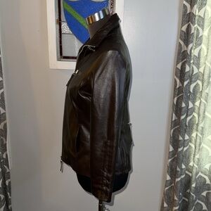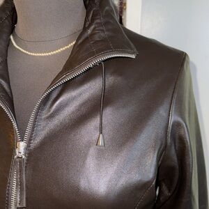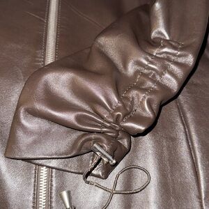 Bod & Christensen Dark Brown Leather Jacket with drawstring gather sleeves