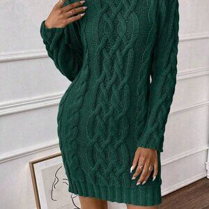 Elevate your winter style with this dark green casual turtleneck knit dress, featuring a high neck, long sleeves, and a short length for a modern look. Perfect for Christmas celebrations and everyday winter wear, this regular fit dress ensures comfort and ease of movement.