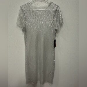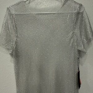 Dazzle in this shimmering silver cover up. Perfect for a night out or on top of a swim suit.