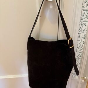 Used a few times. I just don’t typically use a bag this big. Inside bottom of bag has some slight staining (see last photo). Size and more details can found at https://www.madewell.com/p/womens/accessories/bags/bucket-bags/the-essential-bucket-tote-in-leather/NM988/?ccode=BR0129