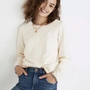 Madewell Cream Embroidered Blanket Stitched Shrunken Sweatshirt Size Small