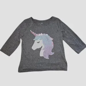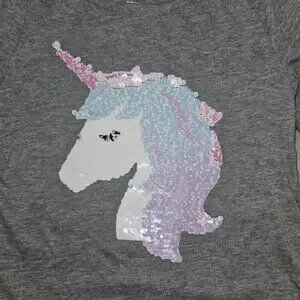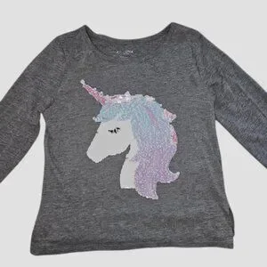 ARIZONA JEANS CO Gray Sequined Unicorn Pullover Top Girls Size 7-8