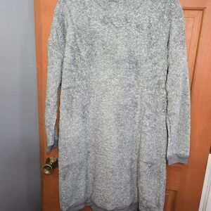 Cozy gray fleece dress featuring a bold skull design. Perfect for casual wear.