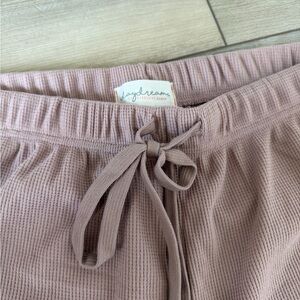 Cozy mauve lounge set with a short-sleeve top and pants.