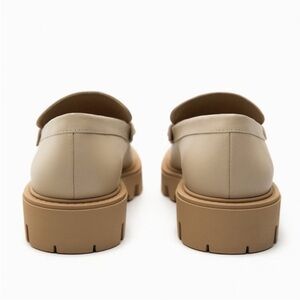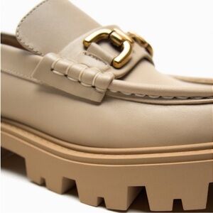 Chic cream loafers with stylish gold buckle. Perfect blend of comfort and elegance.