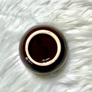 This small, brown and mustard yellow ceramic bowl is perfect for dip or for 1 scoop of ice cream. It has 2 tiny flaws which were there when I received this. Please see photos of tiny flaws and measurements. This bowl has Winnie The Pooh vibes and would also be perfect for serving honey.