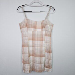 NWT AEROPOSTALE Plaid Mini Dress BROWN & WHITE size M Smocked Back Preppy Cute