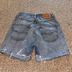 These were once jeans and I had cut them into shorts. They’ve been around for a while with me now! The back pocket is starting to rip against the pant, but can be sewn back together. From a pet and smoke free home. No stains