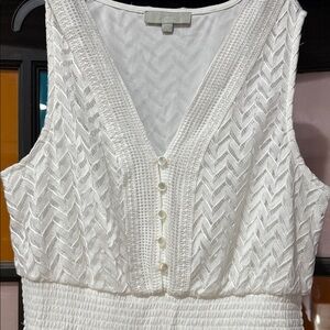 This chic ivory sleeveless maxi dress is a versatile addition to your wardrobe. Its elegant design and comfortable fit make it perfect for any occasion.