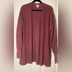 Cozy mauve cardigan. Soft knit fabric. Ideal for layering.