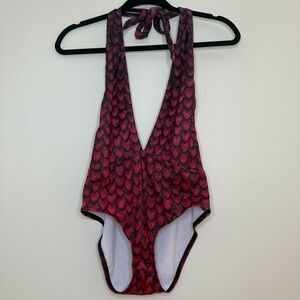 BLACKMILK Drogon Dragon Egg Pink GoT Deep V Halter Tie Vegas Bodysuit Swimsuit