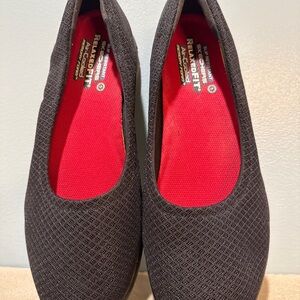 Skechers WORK Black Loafers Slip Resistant Red Insole EUC