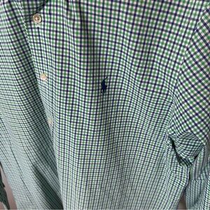 Stylish Ralph Lauren shirt with green and blue plaid. Ideal for casual wear.