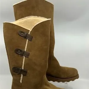 Bearpaw Hayden Tan Suede Boots Buckle Sheepskin Wool Women's Sz 9
