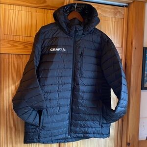 Sleek black jacket by Craft. Features a cozy hood and quilted design. Brand new, synthetic insulation, and a zip off hood.