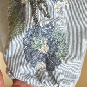 J. Jill Sky Blue Blouse with Embroidered Sleeves