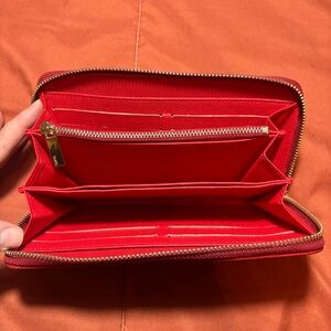 Stylish Gucci wallet with vibrant floral design. Features iconic logo pattern. Perfect for any occasion.