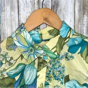 Talbots Green Floral Palm Button Down