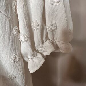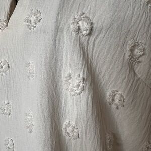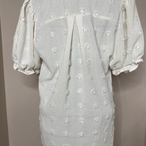 This elegant white top features a beautiful textured design, puffy sleeves. Its soft fabric and stylish cut make it a must-have addition to your wardrobe. Loose fit. Tuck our wear out. Great for layering under a jacket. Office appropriate 🤍 wash and wear!! Great staple piece 💛