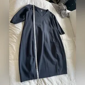 Persona by Marina Rinaldi dress, Marina Rinaldi plus size dress, navy shift dress, V-neck midi dress, minimalist dress, capsule wardrobe staple, workwear dress, Max Mara plus size, luxury plus size clothing, timeless navy dress, classic navy midi