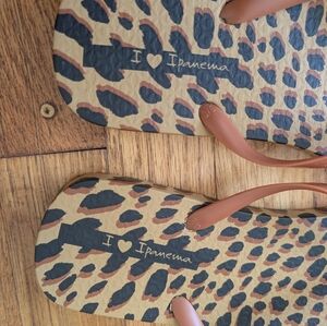 Ipanema Leopard Print Flip Flops with Tan Straps