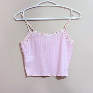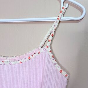 Cotton On Body Cropped Pointelle Baby Pink Cami w Strawberry Print Straps