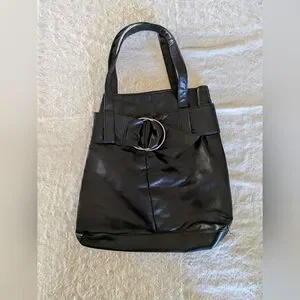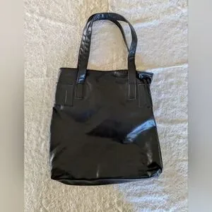 Stylish black tote with a glossy finish. Perfect for daily use. Spacious and chic design.