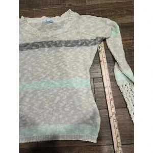 Maurices Small Striped Grey Mint Open Knit Long Sleeve Pullover Sweater