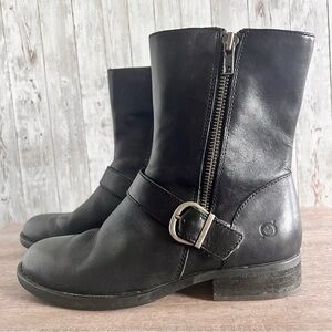Born Black Leather Moto Buckle Ankle Boots 7.5