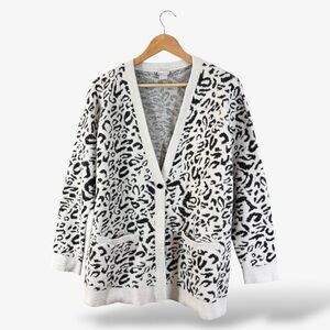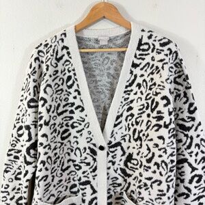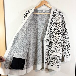 Chico’s Plush Animal Print Cardigan Size 2 (US L) Gray White Leopard Casual