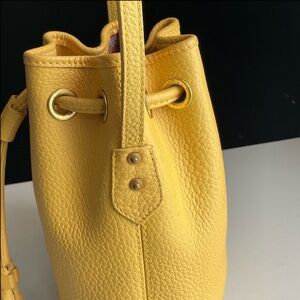 Dooney and Bourke AWL leather Palomino Yellow mini drawstring bucket bag purse