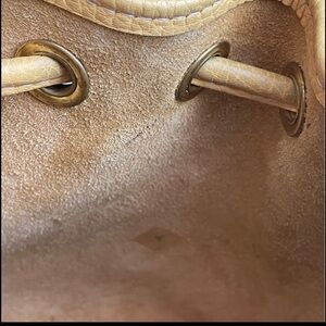 Dooney and Bourke rare all weather leather in yellow palomino color with solid brass hardware, drawstring closure , shoulder strap and short crossbody. No original