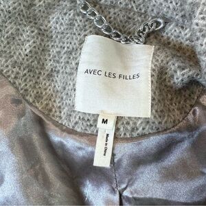 Avec Les Filles boxy tweed coat double breasted grey patch pockets M