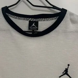 Classic Jordan tee with black trim. Iconic logo on chest. Ideal for everyday style.