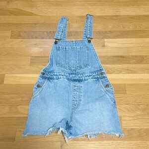Stylish and comfortable light blue denim overalls perfect for casual outings. Features adjustable straps and a classic pocket design.