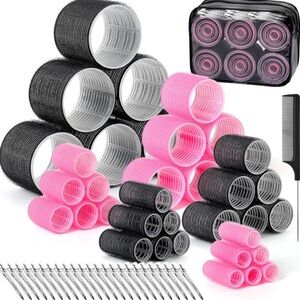 6 Sizes Rollers/62 Pcs Curlers Self Grip with 36 Roller 24 Clips 1 Storage Bag