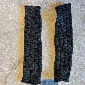 Stylish black cable knit leg warmers. Perfect for adding warmth and style.