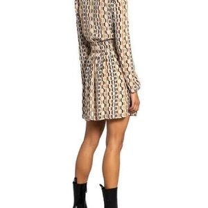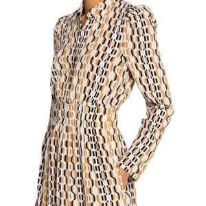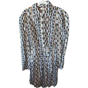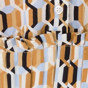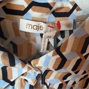 Maje Rablic Pleated Shirt Dress Geo Print Brown Blue Size 34 US 2