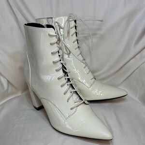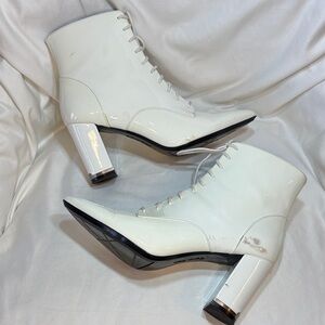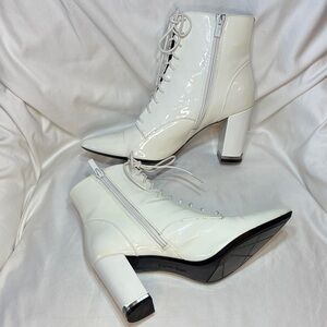 Calvin Klein Patent Leather White Lace-Up Boots Sz 9