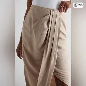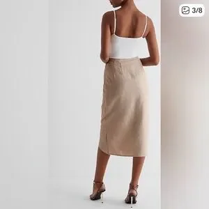 Express Super High Waisted Linen-Blend Shine Draped Midi Skirt