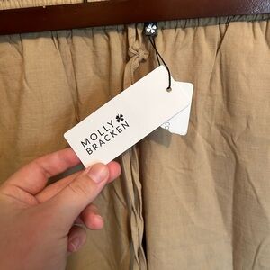 Molly bracken brand. Wide leg woven pant. Linen like material. Size medium. Tan in colour. Brand new with tags