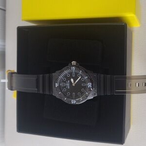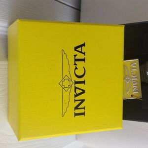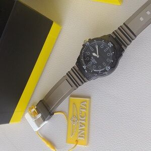 New, never used. Invicta black watch. Comes with the box. Adjustable strap. Has the protective plastic on the face of the watch. Elegant Invicta watch in a delicate black hue. Ideal for everyday wear.